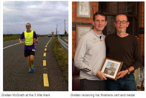 Grellan McGrath won today’s gruelling Connemara 100 Mile ultramarathon, having led from the very early stages. Grellan’s time was 16 hours, 22 minutes and 08 seconds. Grellan’s support crew included John Desmond and Denis Looney.