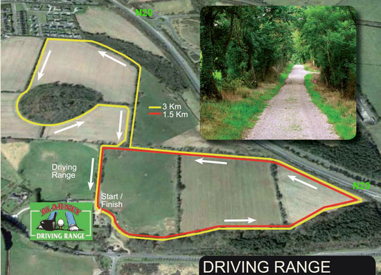 Whilst I normally go to Blarney to hit balls at the range , recently I have been able to pursue both my love of running and golf with the opening of the Castleview Running Trail alongside the Driving Range on the Cork side of the village. Set in stunning rolling terrain amongst beautiful trees and grassy fields this purpose built trail is a must see and will prove to be extremely popular with runners and walkers.
