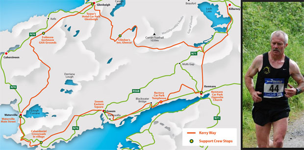 The Kerry Way Ultra is conducted along The Kerry Way trail starting and finishing in Killarney, Co. Kerry. The route is approx. 200kms or 120 miles in length and takes in Glenbeigh, Waterville, Sneem and Kenmare.