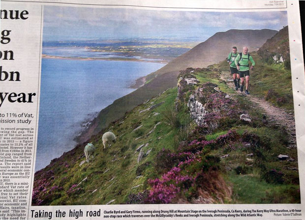 Monday 7th Sept…Charlie’s photo makes the back page of the Irish Examiner!