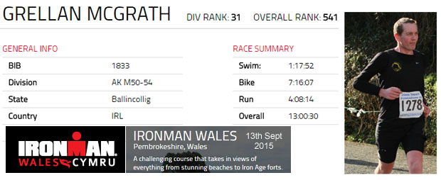 Well done to club member Grellan McGrath on completing the recent Ironman Wales.